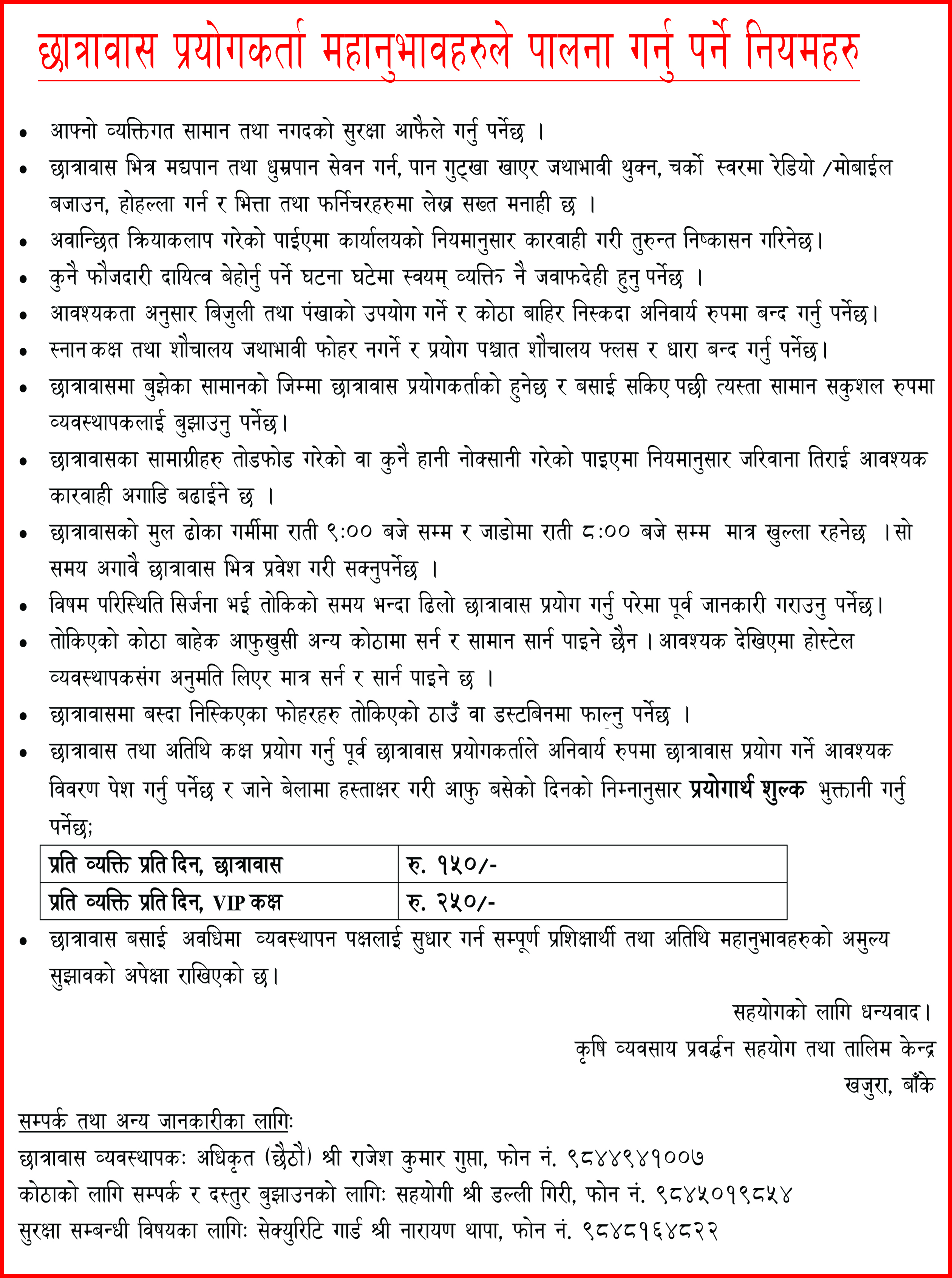 छात्रावासका नियमहरु